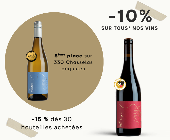 C'est avec une immense fierté que nous partageons une nouvelle exceptionnelle ! · Notre vin rouge Riex Zähringen 2023 s'est vu décerner la Médaille d'Or au Grand Prix du Vin Suisse. · Notre vin blanc Riex Et caetera 2024 a été honoré de la Médaille d'Or par la Sélection des Vins Vaudois. Ces distinctions prestigieuses couronnent des mois – et même des années – de travail acharné, de la vigne à la cave. Chaque geste, chaque soin apporté à nos ceps et à nos vinifications a contribué à créer des cuvées d’exception, reconnues par les plus grands concours. Mais plus qu’une récompense, c’est une invitation que nous vous adressons : partager avec vous le fruit de cette passion, dans toute sa richesse et son élégance. Nous avons hâte de vous faire découvrir (ou redécouvrir) ces sublimes vins, désormais doublement auréolés d’or, et de lever nos verres ensemble à cette belle réussite !